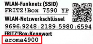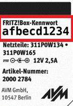 • beiliegenden Karte „Einstellungen ab Werk“ im Karton der FRITZ!Box (siehe Beispiel
