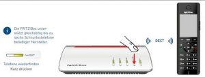• Nutzen Sie ein FRITZ!Fon, dann drücken Sie die „Connect/WPS“-Taste der FRITZ!Box. Die LEDs „WLAN“, „DECT“ und „Connect“ blinken und das FRITZ!Fon wird sofort angemeldet.