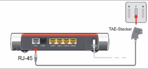 Hinweis: Beachten Sie, dass Sie Ihren Router an der 1. TAE-Dose anschließen. Die 1. TAE ist eine spezielle Dose (auf- oder unterputz), die Sie in der Regel an der Aufschrift „1.“ erkennen.