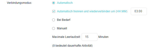 Parameter: Ipv6 aktiv, native Ipv4-Anbindung
